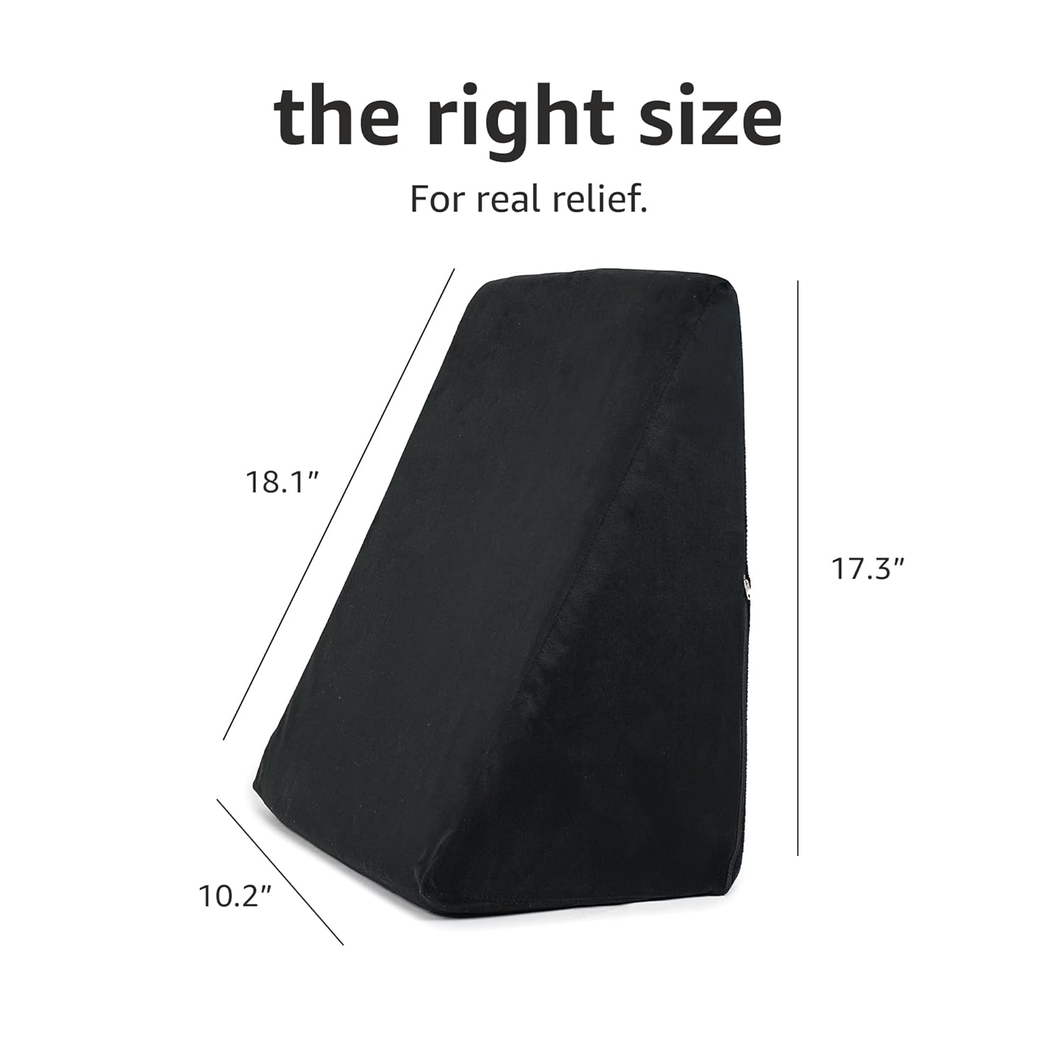 Orthopedic Memory Foam Wedge Pillow – Neck & Back Support for Cervical Pain, Acid Reflux, Snoring, GERD, Leg Elevation & Pregnancy – Ultra-Soft Washable Velvet Cover, 25x44x45 cm (Black)