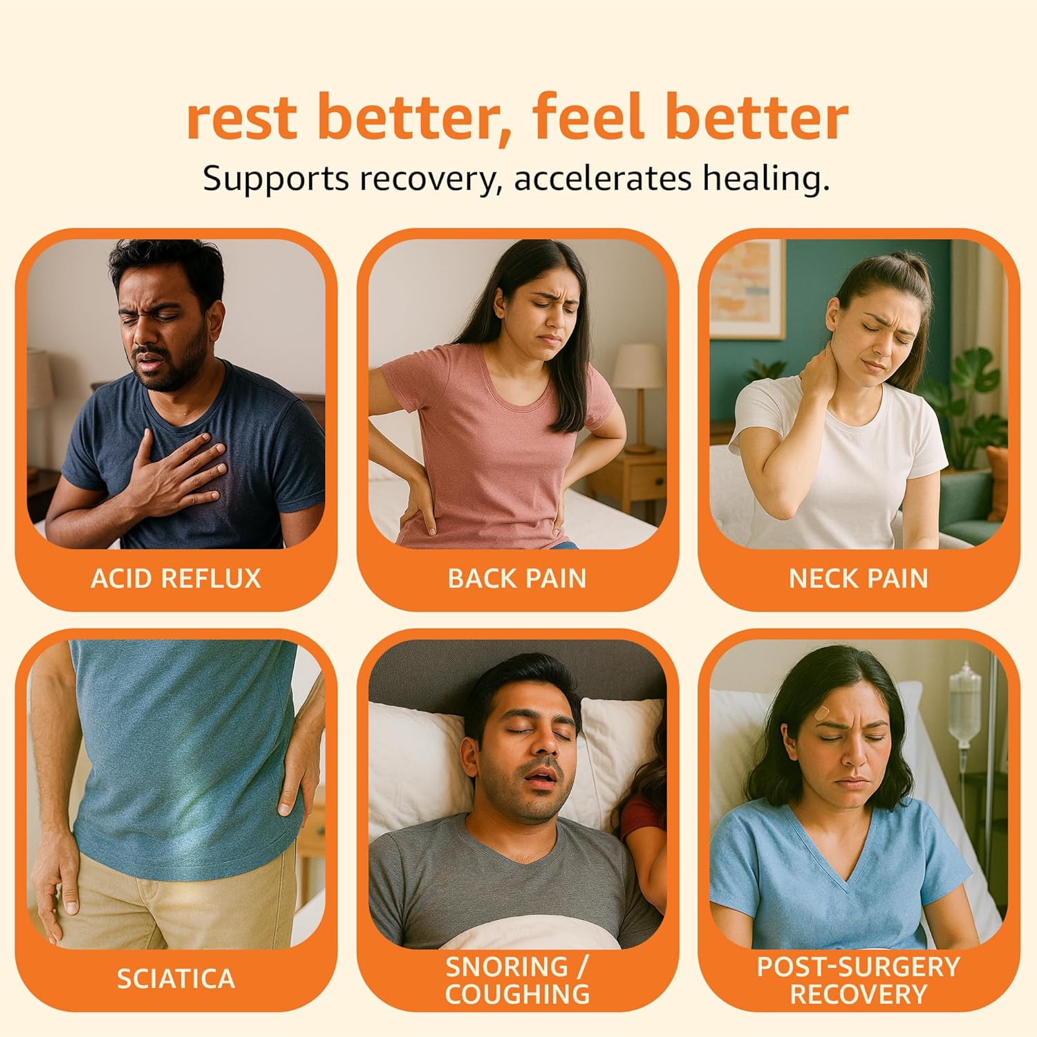 Whether you need relief from cervical pain, better posture, or improved breathing, this pillow is your all-in-one solution. It’s also perfect for acid reflux, snoring, GERD, pregnancy comfort, post-surgery recovery, and leg elevation.